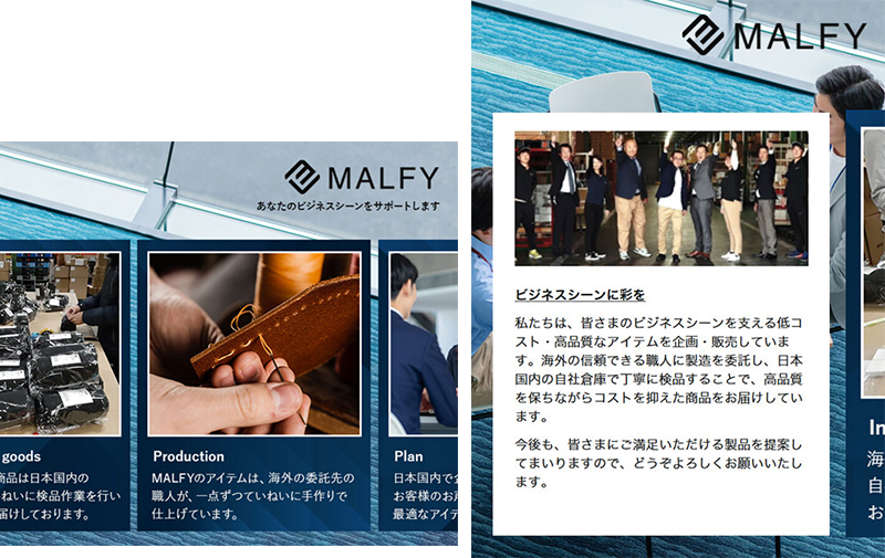 自社ECサイトのスーツ商品の撮影・サイト制作・バナー制作をはじめ、多くのクライアント案件においてWEB制作全般を依頼しています。お付き合いは15年近くになります。