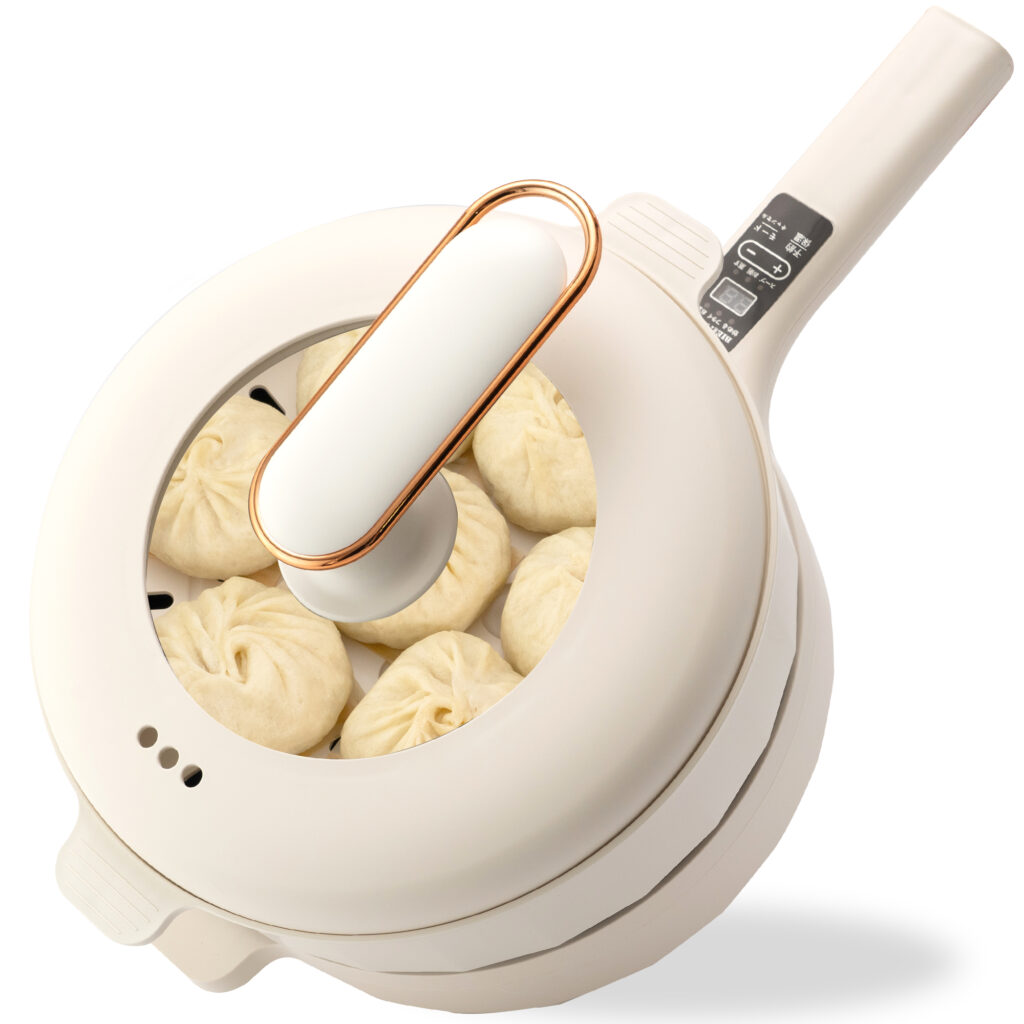 | 制作コメント | 「ご家族5人分」の調理を支える3.2Lの大容量と、マルチな機能性を直感的に伝える構成で制作しました。 自社撮影では、製品のワイドなサイズ感をリアルに伝えるため、実際に大量の野菜炒めや肉まんを調理。シズル感のある湯気や食材の質感を鮮明に捉え、食卓での利便性を視覚的に訴求しました。また、クライアント様からの「ABテストを実施したい」というご要望に基づき、1枚目、2枚目には訴求軸の異なる「野菜炒め」と「肉まん」の2パターンを制作。ターゲットの反応に合わせて最適化できる運用を前提とした構成に仕上げています。 3枚目以降では、5段階の温度調節や豊富な調理モード、安全設計といったスペック面をアイコンと図解で整理。お手入れのしやすさや持ち手の形状など、実写カットを交えて詳細に補足することで、日常使いのイメージを具体化させました。スマホ閲覧を前提とした高い視認性と、キッチンに馴染む洗練されたトーンを両立させ、購買意欲を高めるデザインを目指しました。 |