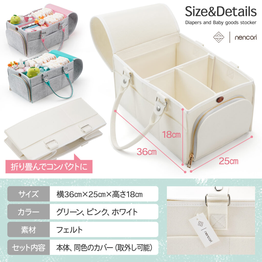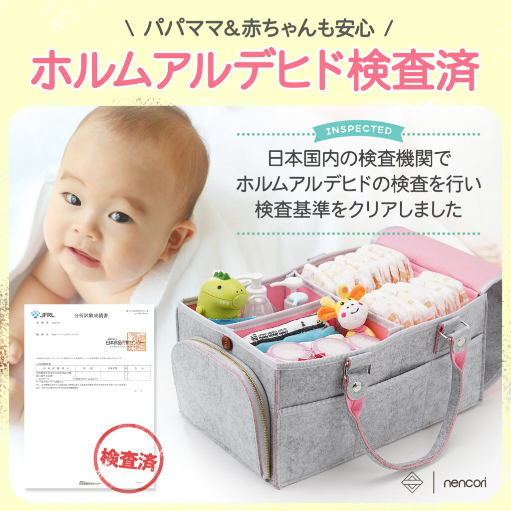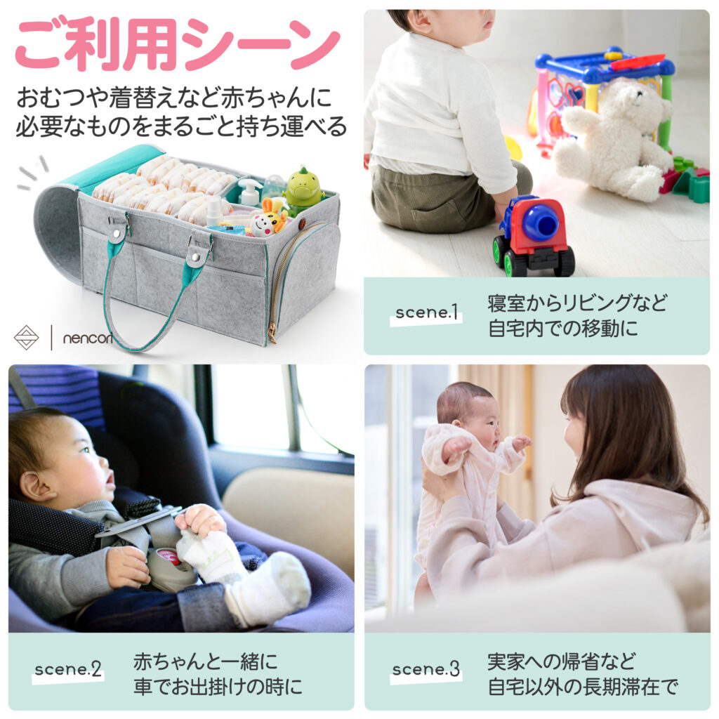 | 制作コメント | ベビー用品としての「安心感」と、育児小物を一括管理できる「収納力」を軸に構成しました。 1枚目で商品の清潔感を提示し、続く2枚目で収納可能な全アイテムを商品の前に並べて撮影。圧倒的なキャパシティを視覚的に訴求し、一目で「これ一つで片付く」という納得感を生んでいます。3枚目以降では、利便性を追求した外周ポケットの機能性や、改良されたカバー・持ち手などの細かなディテールを分解して紹介。 特に安全性については、ホルムアルデヒド検査済証を大きく配置し、デリケートな乳幼児期でも安心して使える根拠を明確に提示しました。車内やリビングなど、実際の使用シーンを想起させるカットを交えつつ、スマホ閲覧を前提とした高い視認性と、生活に馴染むナチュラルなトーンを両立させたデザインに仕上げています。 |