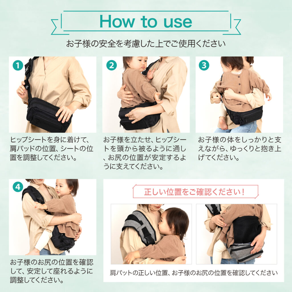 | 制作コメント | 2WAYショルダーバッグ&ヒップシートの多用途性を、「日常に溶け込む育児アイテム」として伝えることを軸に設計しました。Amazon1枚目ではバッグ単体と装着イメージを。機能性と使用シーンを訴求。2枚目以降では“4つのポケット”による収納力を視覚的に分解し、実際に入るアイテムを見せることで具体的な使用イメージを強化しました。さらにHow to useを明示することで、安全性への配慮と安心感を補完。サイズ・耐荷重・対象年齢などのスペックは最後に整理し、購入判断を後押しする構成にしています。スマホ閲覧を前提に、文字量と視認性を最適化。撮影からデザインまで一貫して行い、“持ち歩けるヒップシート”という新しい選択肢を直感的に理解できるページへ仕上げました。 |