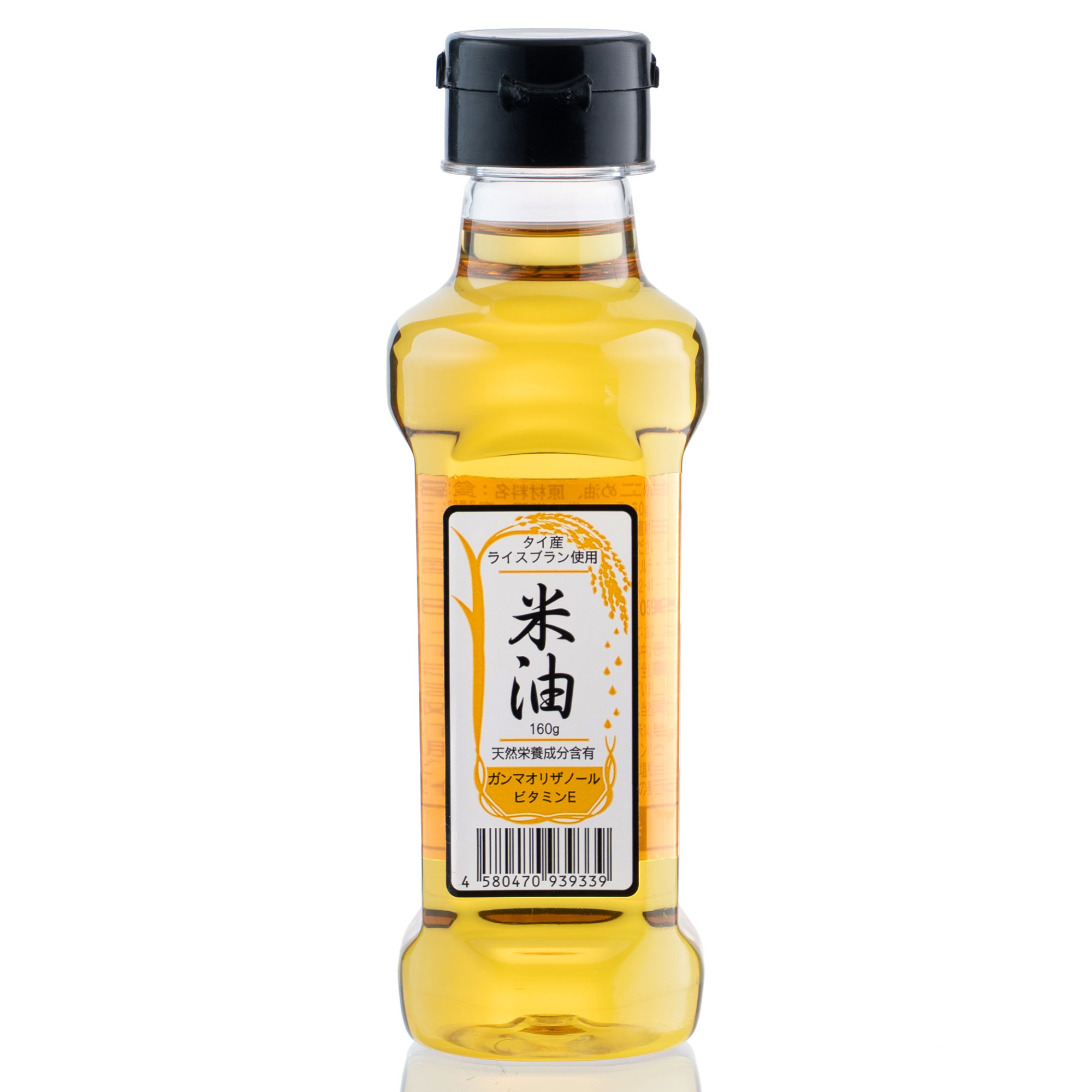 食用油などの液体商品では、色味の美しさと清潔感の表現が商品の印象を大きく左右します。本撮影では、米油特有の透明感のある黄金色が自然に伝わるよう、液体内部の明るさとボトル外側の反射を細かくコントロールしながら撮影を行いました。